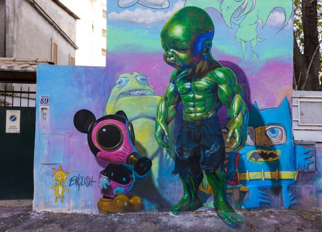 Ron English is an American artist, illustrator, and cultural commentator known for his colorful, graphic murals and public artworks. He is considered one of the pioneers of the street art movement in the United States, and has been active in the graffiti and street art scenes since the 1980s.